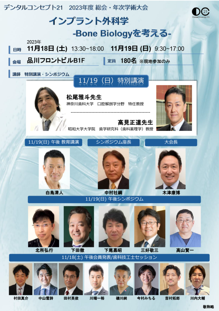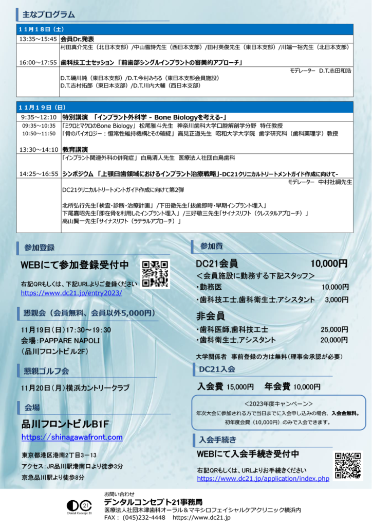 デンタルコンセプト21 総会・年次学術大会への受付を開始。